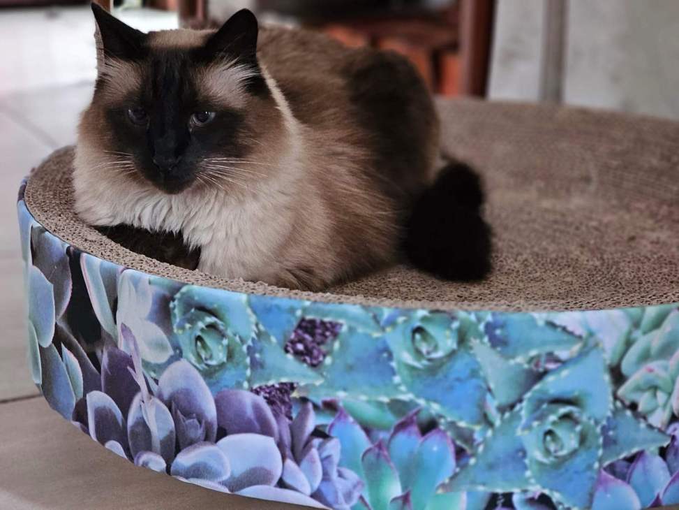 Most cats are naturally drawn to cardboard. They will scratch and sleep on their Miu Miu.